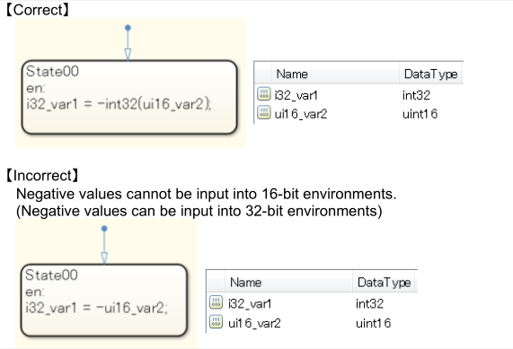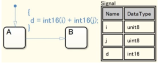 a: 禁止在 Stateflow 所有操作中使用隐式类型转换,包括在相同数据类型的变量之间执行替换、比较、算术等操作。函数调用中的实际参数和形式参数的数据类型应该是相同的。