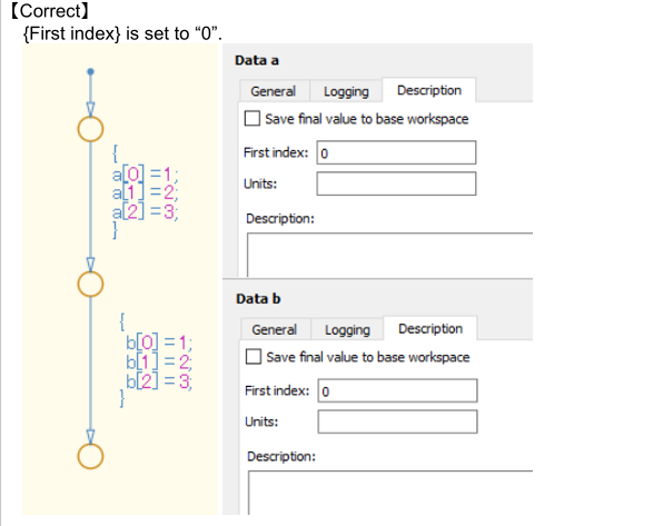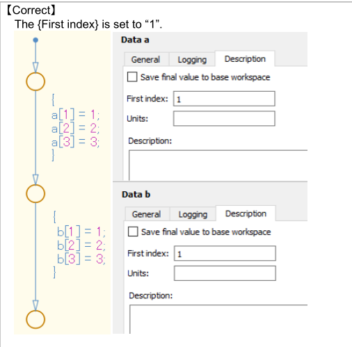 当不选中{Use Strong Data Typing with Simulink I/O}时,可以输入和输出到[Chart]的Simulink信号数据类型设置为“double”类型。然而,[Chart]中的任何类型的输入数据都可以直接与该信号连接。当这两个信号具有不同的数据类型时,将发生隐式数据类型转换。通过选择{Use Strong Data Typing with Simulink I/O},隐式数据类型转换不会发生,并产生数据类型不一致错误。这样可以防止由于数据类型的不同而产生误解,从而提高可读性。