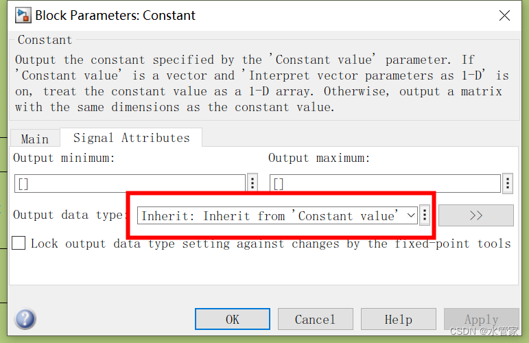 一般来说,Const模块包含有两个设置的地方,第一个是主要的信息,设置Main中的Valve模块数值,在Signal Attributes中可以设置输出类型。
