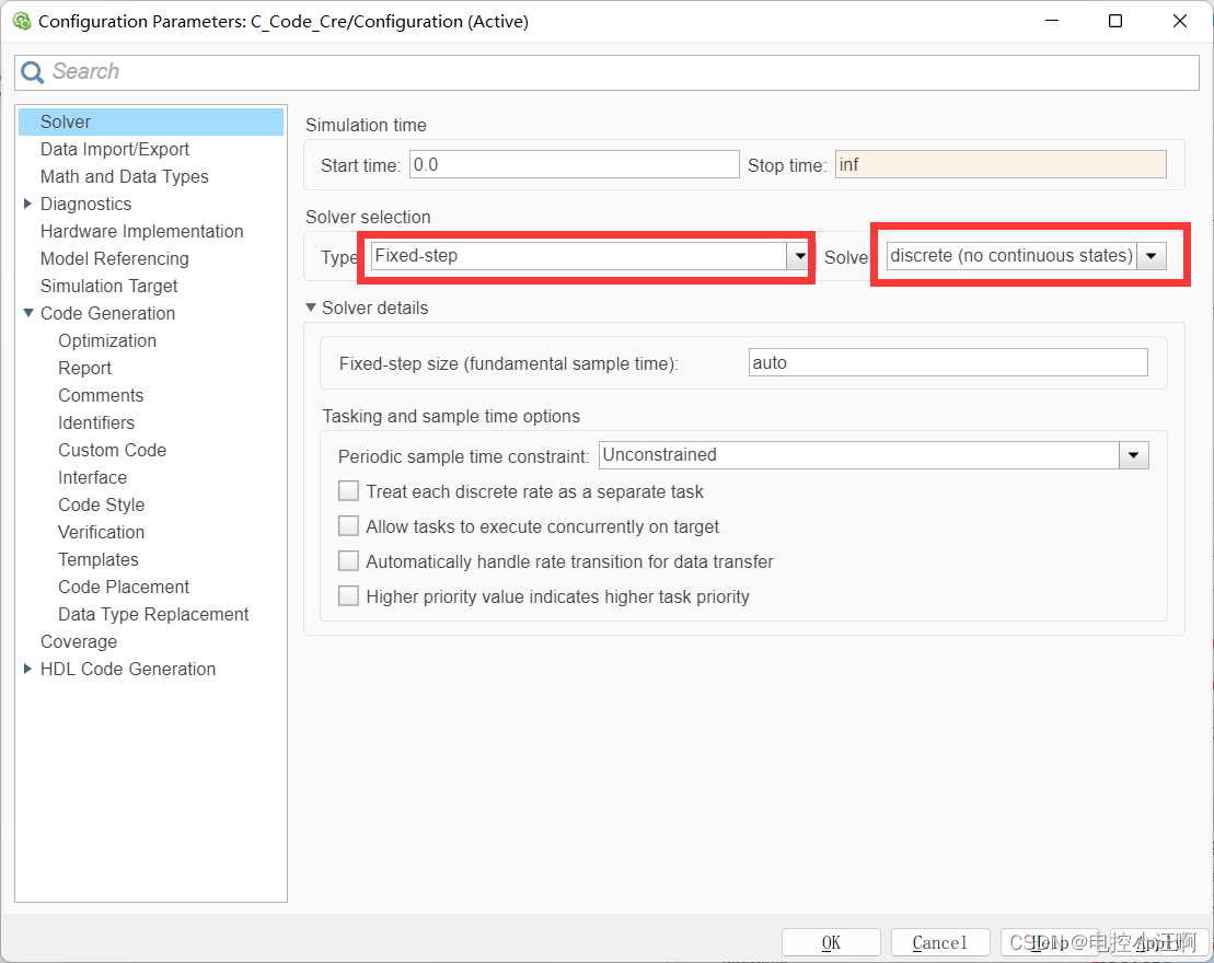 simulink模型设置: