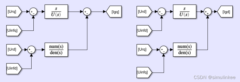 通过Linear Analysis可发现,使用框图1的模型比使用框图2的模型多出了6个状态变量,出现了实部非常小的特征根;但二者的时域仿真波形一致。