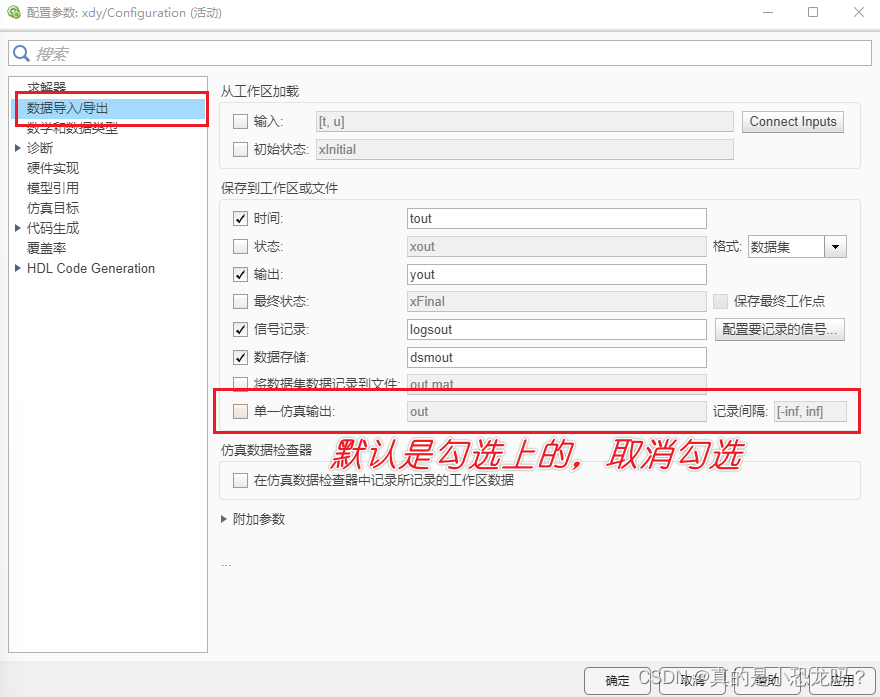 错误原因:这是因为当仿真结束时在Workspace里会生产一个名字叫 out 的类。它的Value是1x1 SimulationOutput。但发现通过sim()函数仿真时,当仿真结束却不会产生上述的 out 类。
