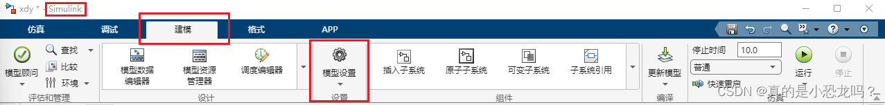 1、进入Simulink,找到选项卡建模,找到模型设置
