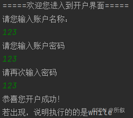 System.out.println("恭喜您开户成功!");
