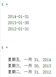4、t = datetime(DateStrings,'InputFormat',infmt)