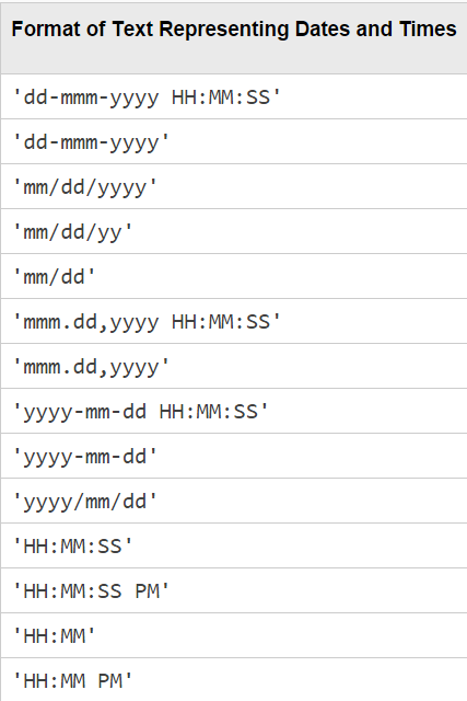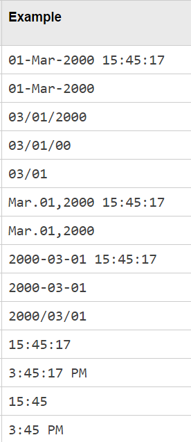 如果文本中使用的格式是已知的,则还应该指定formatIn。 如果未指定formatIn,则DateString必须采用以下格式之一。
