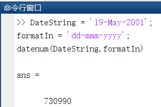 对于表示日期的文本,datenum 将返回一个日期数字,其格式为 'dd-mmm-yyyy'。
