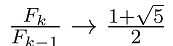k=k+1;F(k)=F(k-1)+F(k-2); x=F(k)/F(k-1);