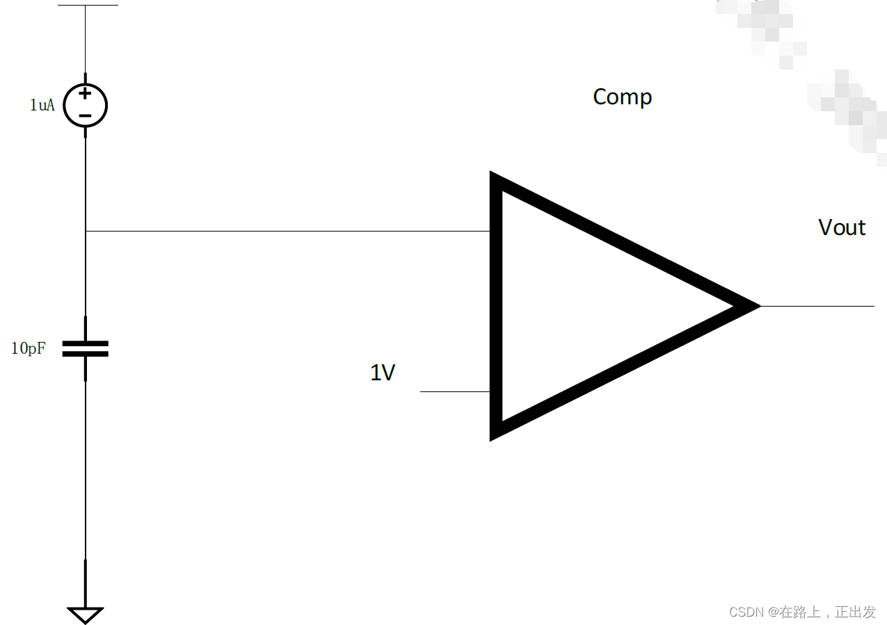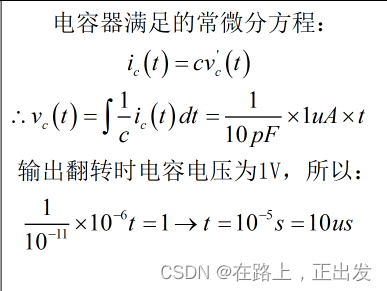 3、如下电容初始电压为0V,请根据图中参数计算出,电容充电到比较器翻转的时间: