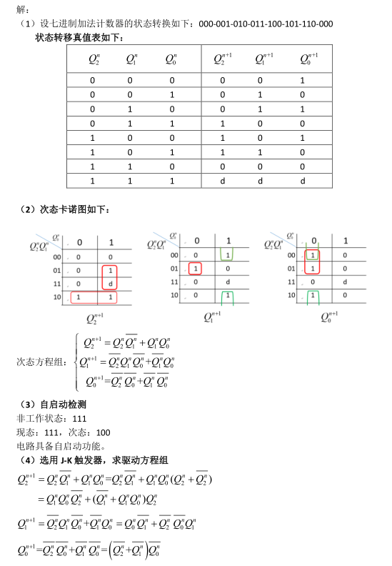 (3) 自启动检查:根据以上次态方程, 检查多余状态的转移情况。