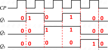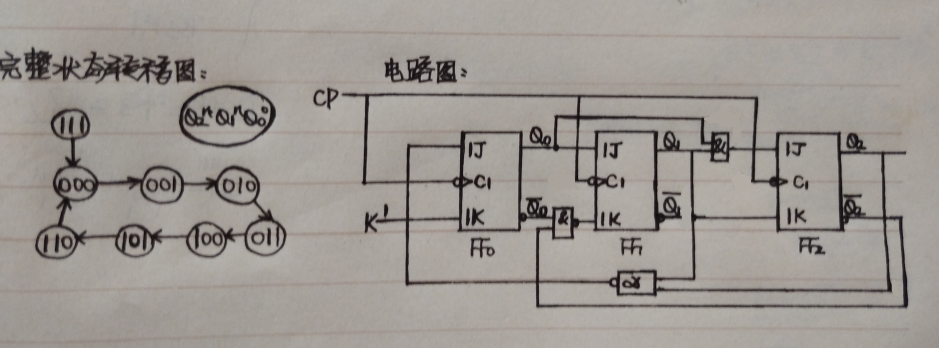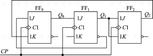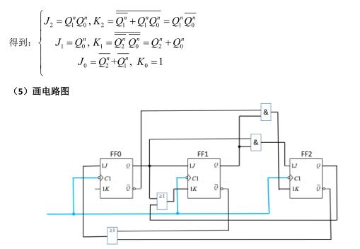 ⎩⎪⎨⎪⎧Q2n+1=Q1nQ2n+Q1nQ2nQ1n+1=Q0nQ1nQ0n+1=Q2n=Q2n Q0n+Q2nQ0n⎩⎪⎨⎪⎧J2=Q1n,K2=Q1nJ1=Q0n,K1=1J0=Q2n,K0=Q2n