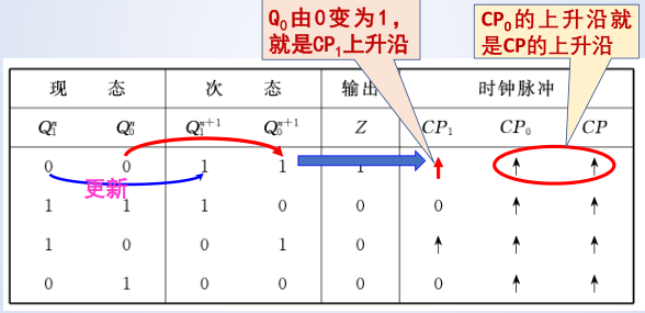 - 次态方程:将驱动方程代入对应触发器特征方程得到的逻辑表达式