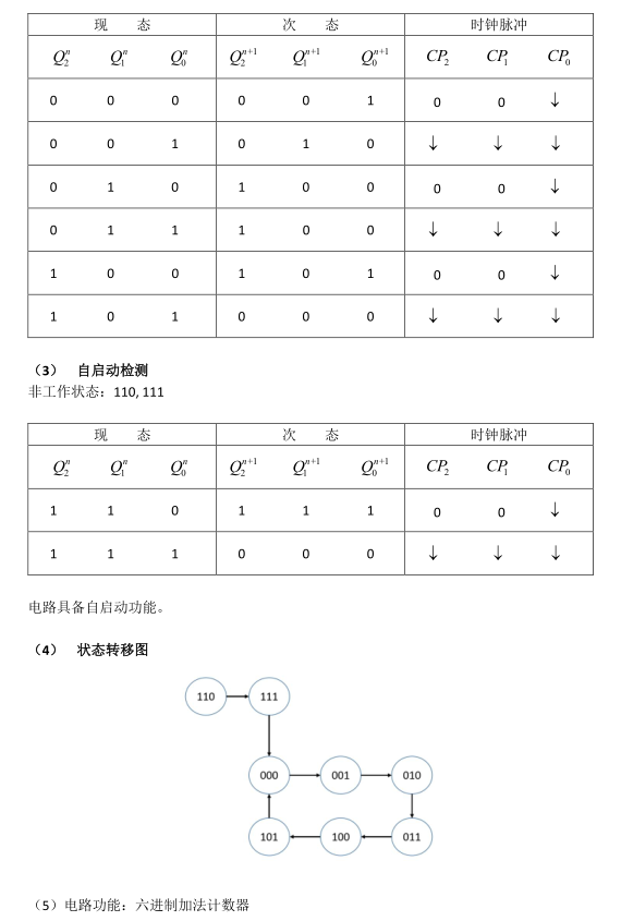 (1) 电路万一进入无用状态,能否在时钟脉冲作用下进入有效状态,即是否具有自恢复功能和自启动功能。