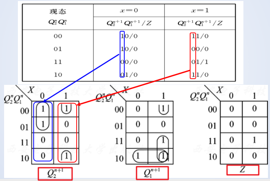 从而,可以得到以下的次态方程组: