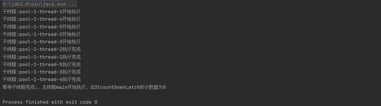 System.out.println("等待子线程完成:,主线程"+Thread.currentThread().getName()+"开始执行,此时countDownLatch的计数器为0");