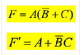 3、对偶式:把一个式子里面的“和”变成“且”,“0”变成“1”,“1”变成“0”: