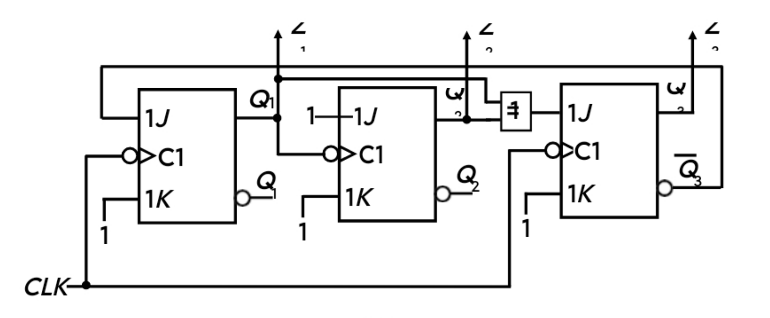 既然是模4,那么最大值为3,化成二进制是11,那么只需要两个触发器即可