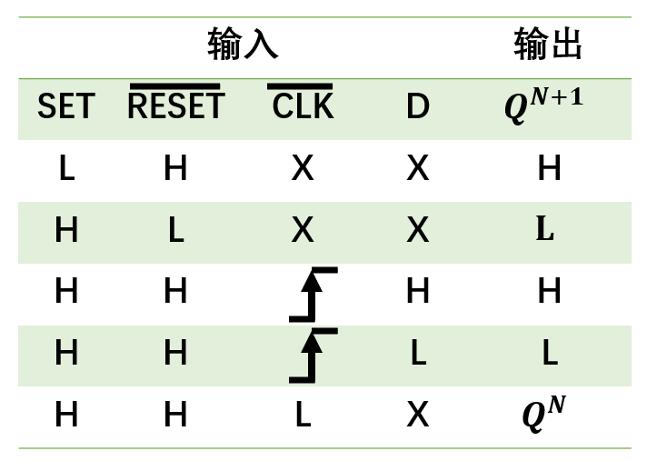 由于SET和RESET都为低电平有效,所以在D触发器工作时,都要接高电平