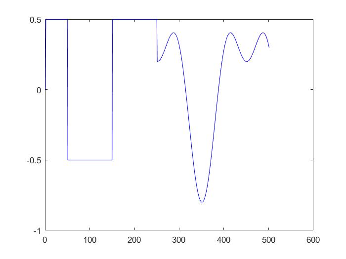 yd(k+1) = 0.5*sin((k*pi)/100) + 0.3*cos((k*pi)/50);