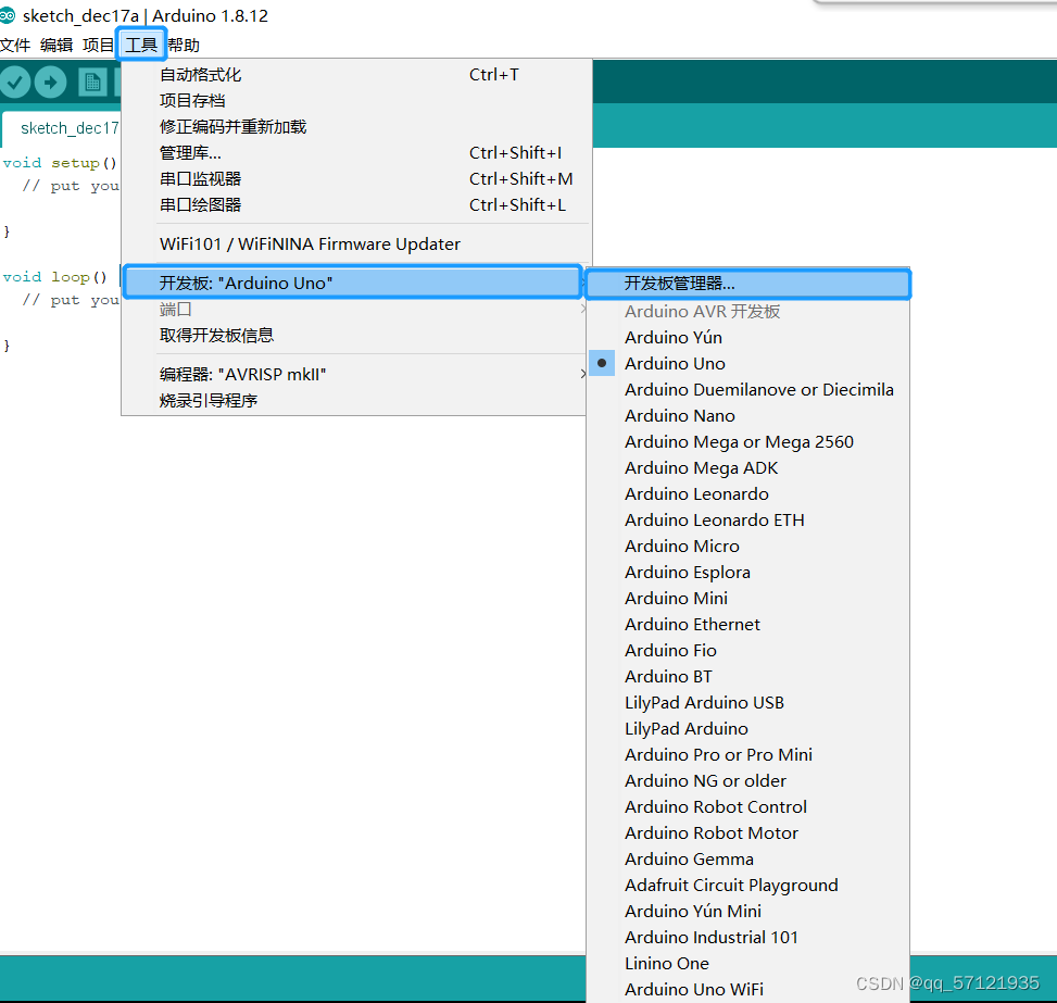 代码写完之后,再设置端口以及开发板的型号