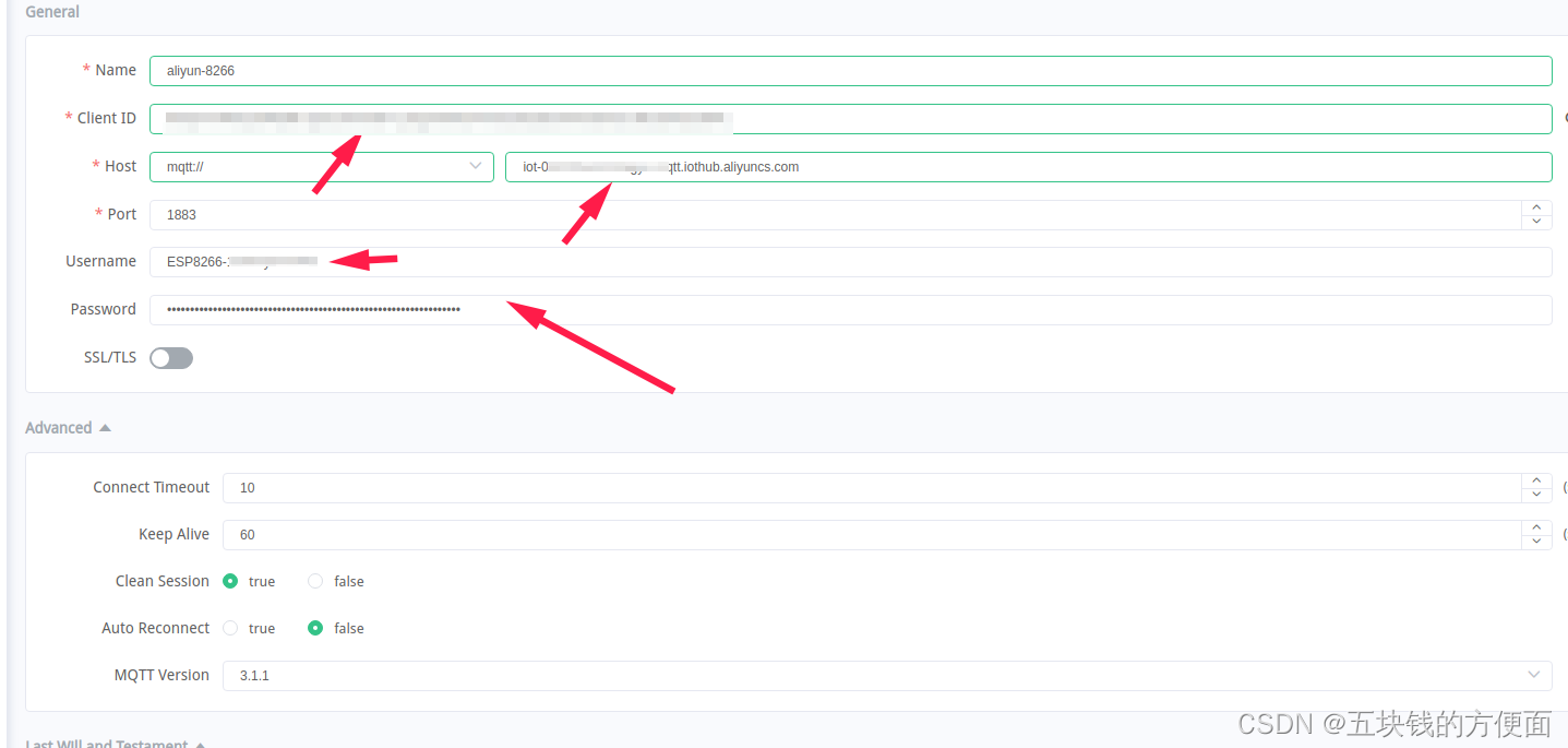 MQTTX添加个连接,几个参数第一步说了设备信息里面有现成的了。