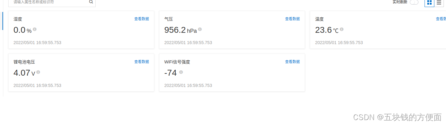 最后在设备的物模型数据里面可以看到我们产品里面定义的属性,值就是我们ESP8266报上来的数据