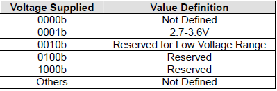 我们在发送CMD8的时候,可以顺便通过其所带的参数(VHS)告诉SD卡主机的供电情况,VHS定义如下: