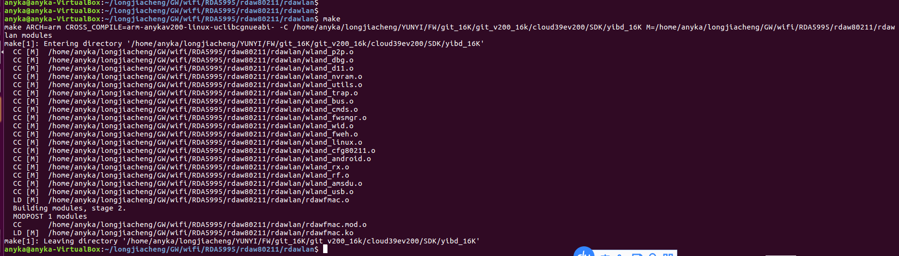 4、在ubuntu下的RDA5995rdaw80211rdawlan路径下直接make 就会编译生成对应的rdawfmac.ko