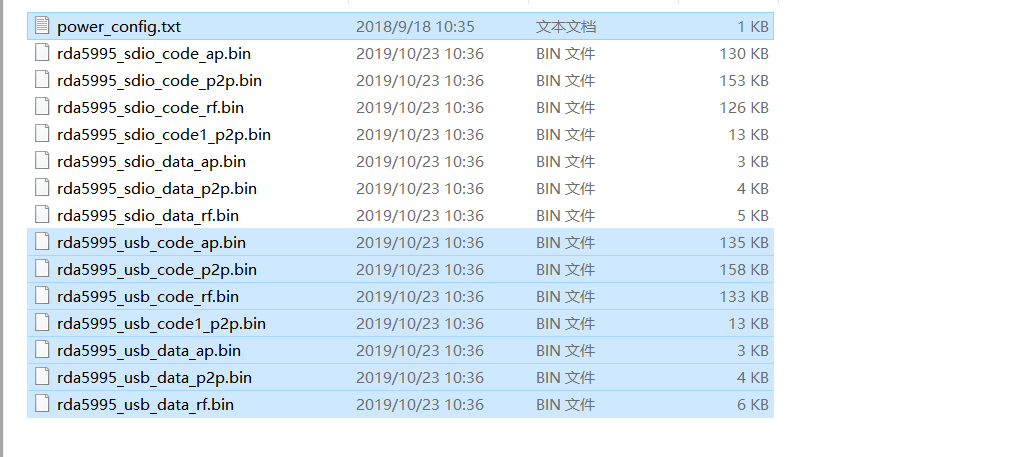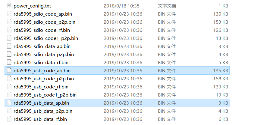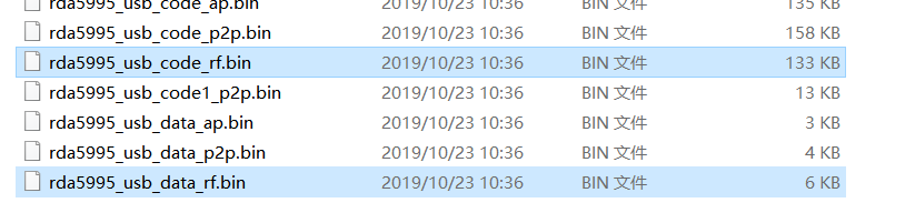 在RDA5995firmware下面,USB接口的,放这几个选中的firmware就行了: