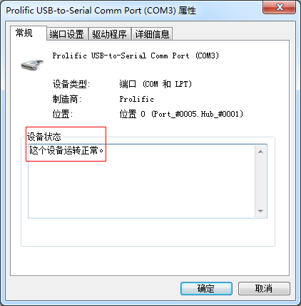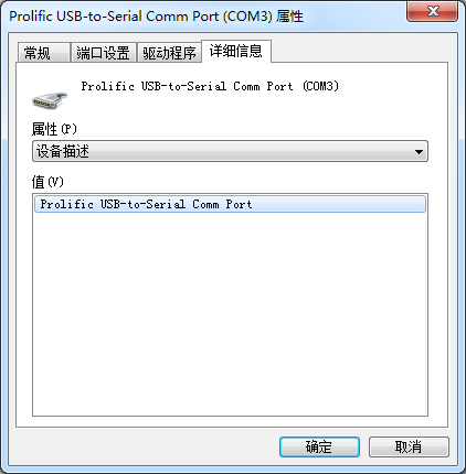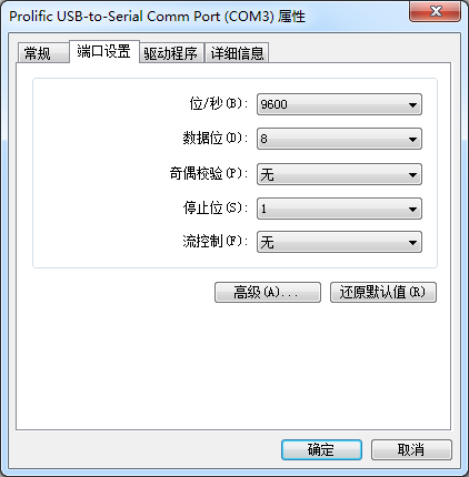 在设备管理器的端口(COM和LPT)下可以看到Prolific USB-to-Serial Comm Port(COM3),右键->属性可以查看该GPS模块对应端口的具体信息,其中最重要的就是端口设置中的波特率、数据位、停止位和奇偶校验这四个参数。