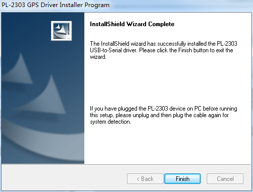 在GPS模块上的USB插入电脑之前,首先向客服人员索要驱动,得到PL2303_Prolific_GPS_AllInOne_1013.exe驱动安装包后,双击运行即可,安装完成后可在控制面板中查看已安装的程序中有PL-2303 USB-to-Serial,表示安装成功。