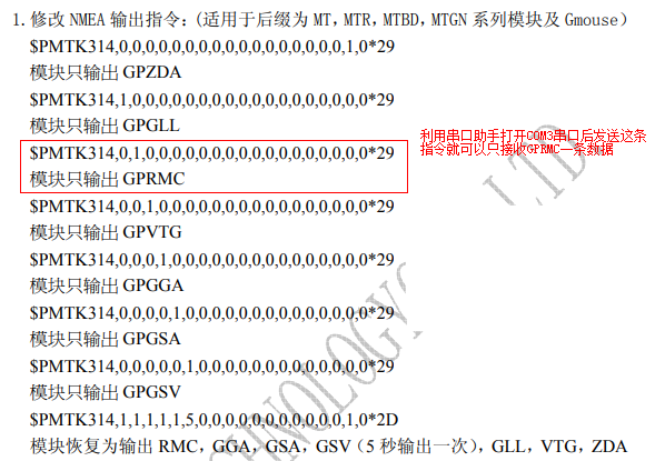 由于GPS模块接收到的数据遵循NMEA-0183协议,该协议采用ASCII码,其串行通信默认参数为:波特率=9600bps,数据位=8bit,开始位=1bit,停止位=1bit,无奇偶校验。由于数据中包含GPRMC、GPVTG、GPGNS、GPGGA、GPGSA、GPGLL等,但我只需要RMC中一条数据,所以打开串口助手SSCOM3.2,打开COM3串口后通过向GPS模块发送新行$PMTK314,0,1,0,0,0,0,0,0,0,0,0,0,0,0,0,0,0,0,0*29使得模块只输出 GPRMC(这里是客服人员告诉我的指令)
