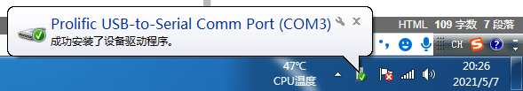 驱动安装成功后,可以将GPS模块的USB接口插入到电脑的USB接口上,这时电脑右下方会提示成功安装了设备驱动程序,同时在电脑->设备管理器中也可进行查看