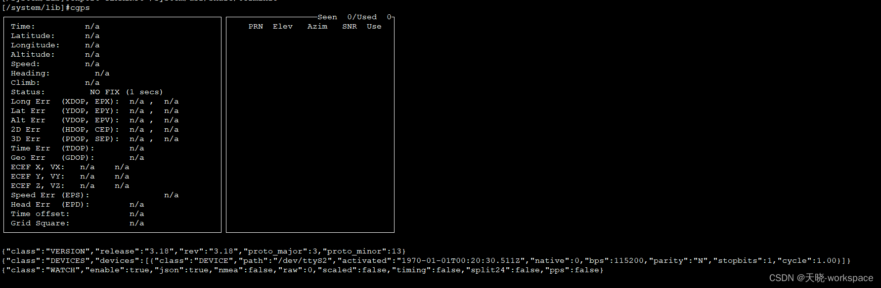 再次执行CGPS,效果如下。这是我没有接收到GPS信号,接收到GPS信号后便会有相应的经纬度值。