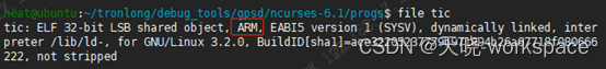 这个是x86平台的tic,我们将 /usr/bin下的tic拷贝至 /home/heat/tronlong/debug_tools/gpsd/ncurses-6.1/progs 目录,替换该目录下的tic