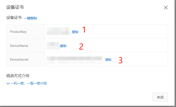 3)DeviceSecre:在设备中可以查看 对应图1 的 (3)