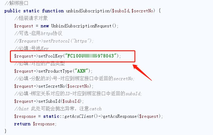 还是PlsDemo.php文件,修改解绑时的号码池