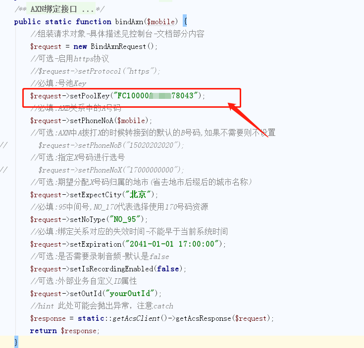 还是PlsDemo.php文件,修改绑定时的号码池
