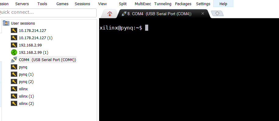 由于我的Pynq开发板上已经写好了Ubuntu镜像,所以出来的就是Ubuntu终端页面了