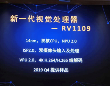 针对视觉领域,推出全新的视觉处理器RV1109芯片。预计将于2019年Q4提供样品。