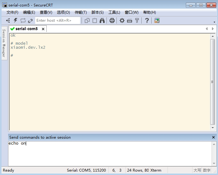 当你按照小米的文档输入指令,比如echo on,再比如model时,发现根本没有反应。不过起码这个模块已经正常启动了,