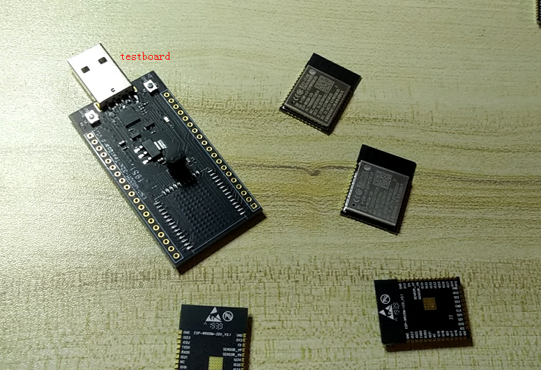 如下图所示。假如你申请的是5块ESPWROOM32D模块,那么就会得到5块核心板,1块测试板。核心板是可以焊接到测试板(底板)上的。从嵌入式系统转入的同学肯定很熟悉这种模式。