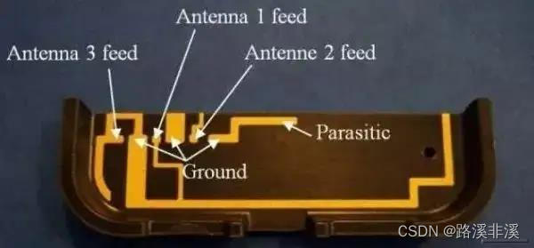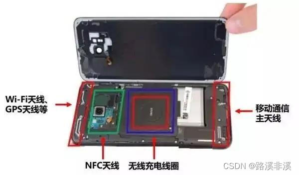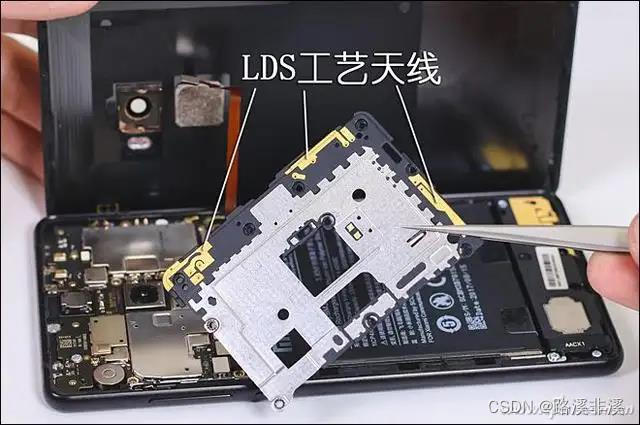 可看见手机里面有一些特定形状的铜片,很小很薄的样子。那就是高频天线。手机信号为高频信号,因此只需很小的几个高频线就可以可靠收发。