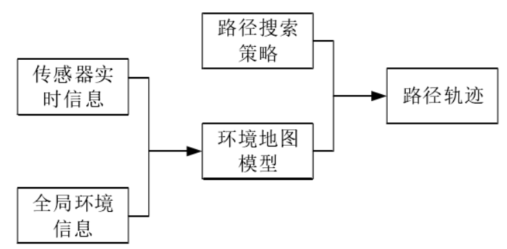 全局路径规划,一般是在规划前已经了解所要执行任务的环境先验信息,为移动机器人设计离线避障优化路径的行为。而对于在规划前环境信息全部或部分未知,障碍物的信息主要包括尺寸、位置和形状等信息需由移动机器人所携带的传感器来进行实时更新,从而获得周围局部范围内的障碍物实际分布情况。在此信息来源方式下构造出一条无碰撞安全优质路径的行为则属于局部路径规划范畴。局路径规划的目标是在给定环境中的障碍物分布情况的前提下,寻找一条从起始节点到目标节点间的最佳无碰撞路径。最优的无碰路径通常需要用一些标准来衡量,比如距离、时间、光滑度或能量,而距离和时间是其中最常见的标准。如果移动机器人初始位姿、环境及目标均为己知,则导航问题转化为全局路径规划问题。