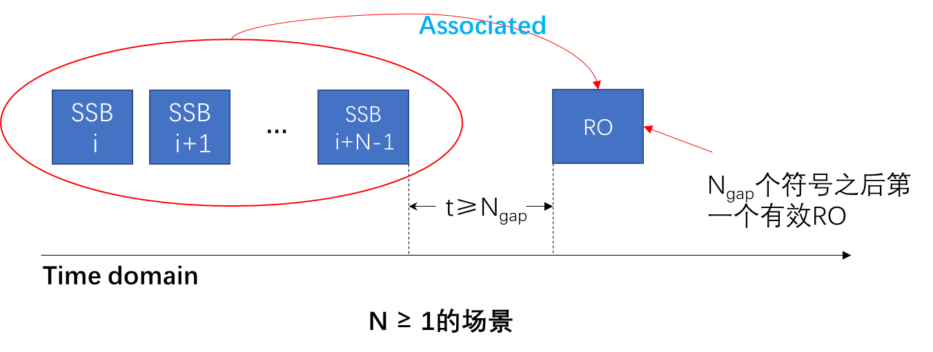 ,那么就意味着多个SSB关联到同一个PRACH occasion,而这个PRACH occasion在时域上的位置必然是晚于所有这些SSB,并且距离时域上最晚的一个SSB至少