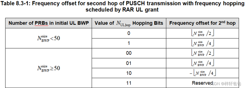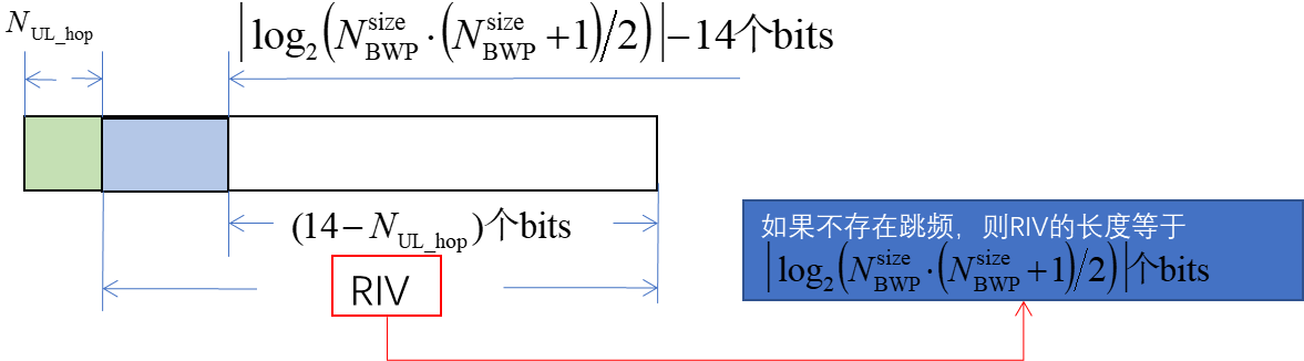 ,最大长度为14个bits。如果UL grant中的‘Frequency hopping flag’字段的数值不为0,则存在跳频。具体形式如下: