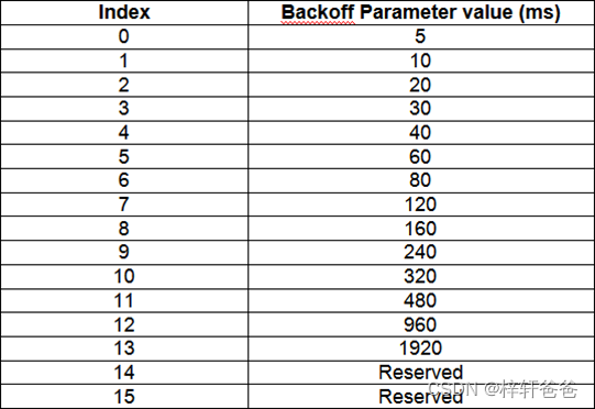 1. BI,全称是Backoff Indicator,用于随机接入失败后终端等待重新发起随机接入的回退时间,回退时间一般是取0~scalingFactorBI*BI之间的一个任意值,scalingFactorBI是一个信令参数,如下表。另外需要注意的是BI是一个4个bits长度的字段,表示的是一个索引值,它所表示的真实时间如下表: