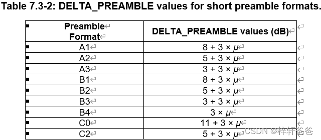 其中,preambleTransMax对应信令参数preambleTransMax,preambleReceived TargetPower对应信令参数:preambleReceivedTargetPower;DELTA_PREAMBLE由下表给出: