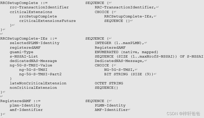 - UL-Grant,上行授权。因为终端还没有和基站建立RRC连接也没有进行上行同步,因此没法通过Scheduling Request来向基站请求上行授权进行上行传输,只能通过在RAR消息中携带上行授权信息让终端发送第一条上行消息Msg3,也就是RRCSetupRequest,RRC连接请求。
