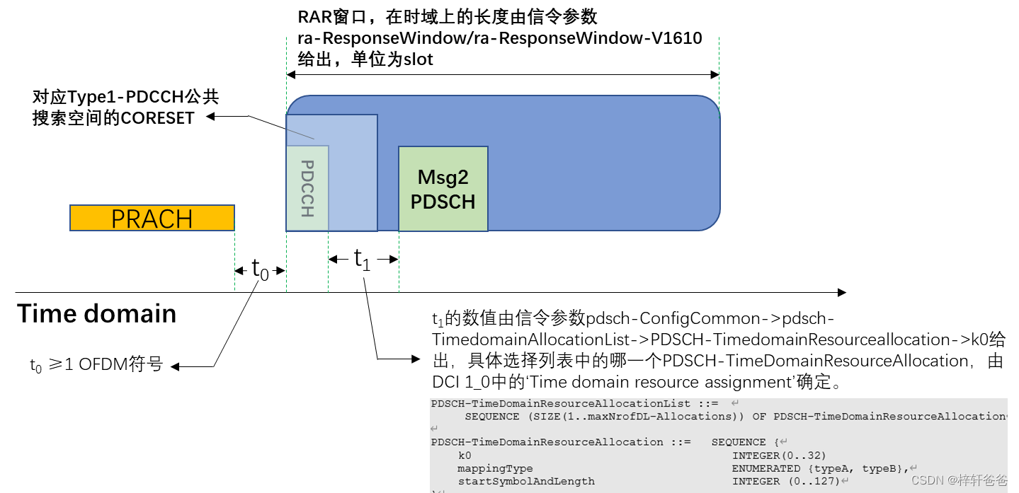 终端一旦发出preamble,就会开启一个Msg2消息等待窗口等待RAR消息的到来,在这个窗口期内终端收到的RAR均认为有效。RAR窗口的长度和起始时间见以下示意图: